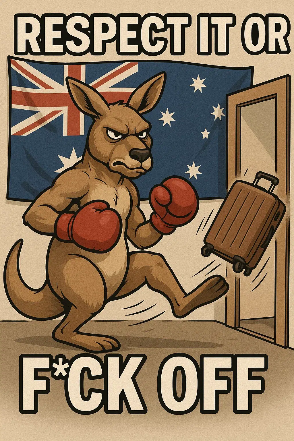 Australia isn’t a bloody Airbnb. You don’t get to check in, rearrange the furniture, and leave a review demanding “improvements.” Our traditions, our values, our way of life they are non-negotiable. If you can’t handle Santa in the shopping centre, the national anthem at school, or the fcking Southern Cross flying in the sky, then too bad. Harden up or fck off.